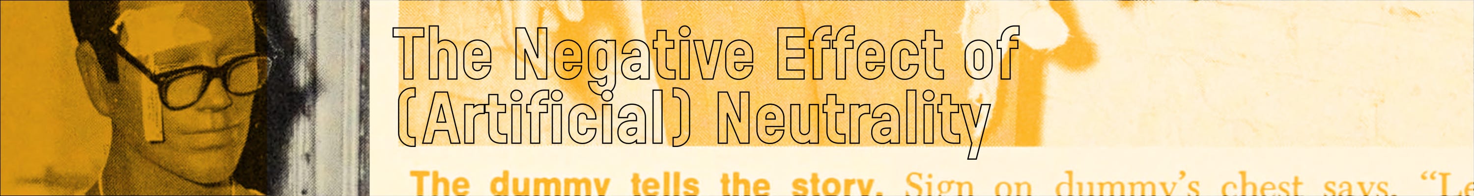One of the most dangerous ways people can create is by pretending their creativity is neutral. The things that we create are steeped in our cultural moment and all of the circumstances of their creation. That means that your idea of "neutrality" represents an agreement with everything going on around you. It's an endorsement of the status-quo. It is a reinforcement of both the good and the bad in the world. It is also creating an opportunity for others to co-opt your work and fill it with meaning where you left a void.